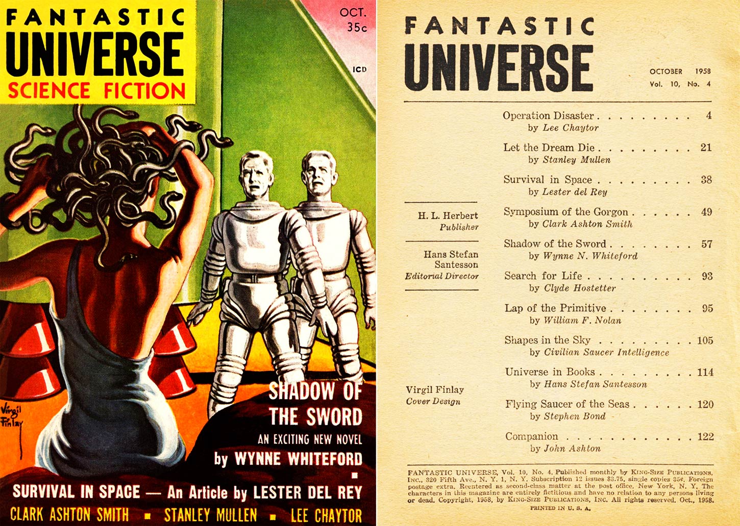Now, here’s an image showing the cover and table of contents of the October 1958 issue of Fantastic Universe: